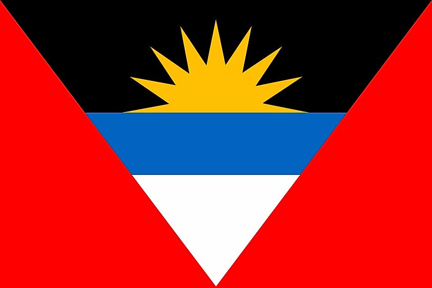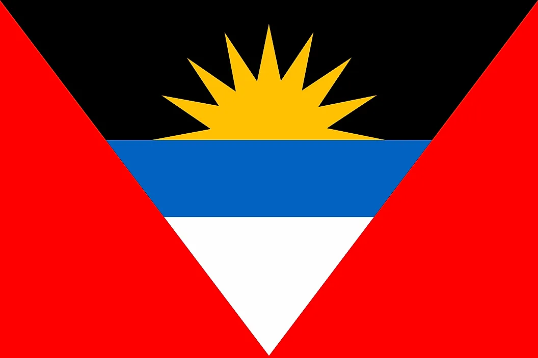 The National Flag of Antigua and Barbuda was officially adopted on February 27, 1967, when its status changed from a colony to an associated state of the United Kingdom. A ‘unique and easily recognizable flag’ designed by the renowned local artist and sculptor Sir Reginald Samuel was adopted as the flag of Antigua and Barbuda. The flag has a height to width proportion ratio of 2:3.