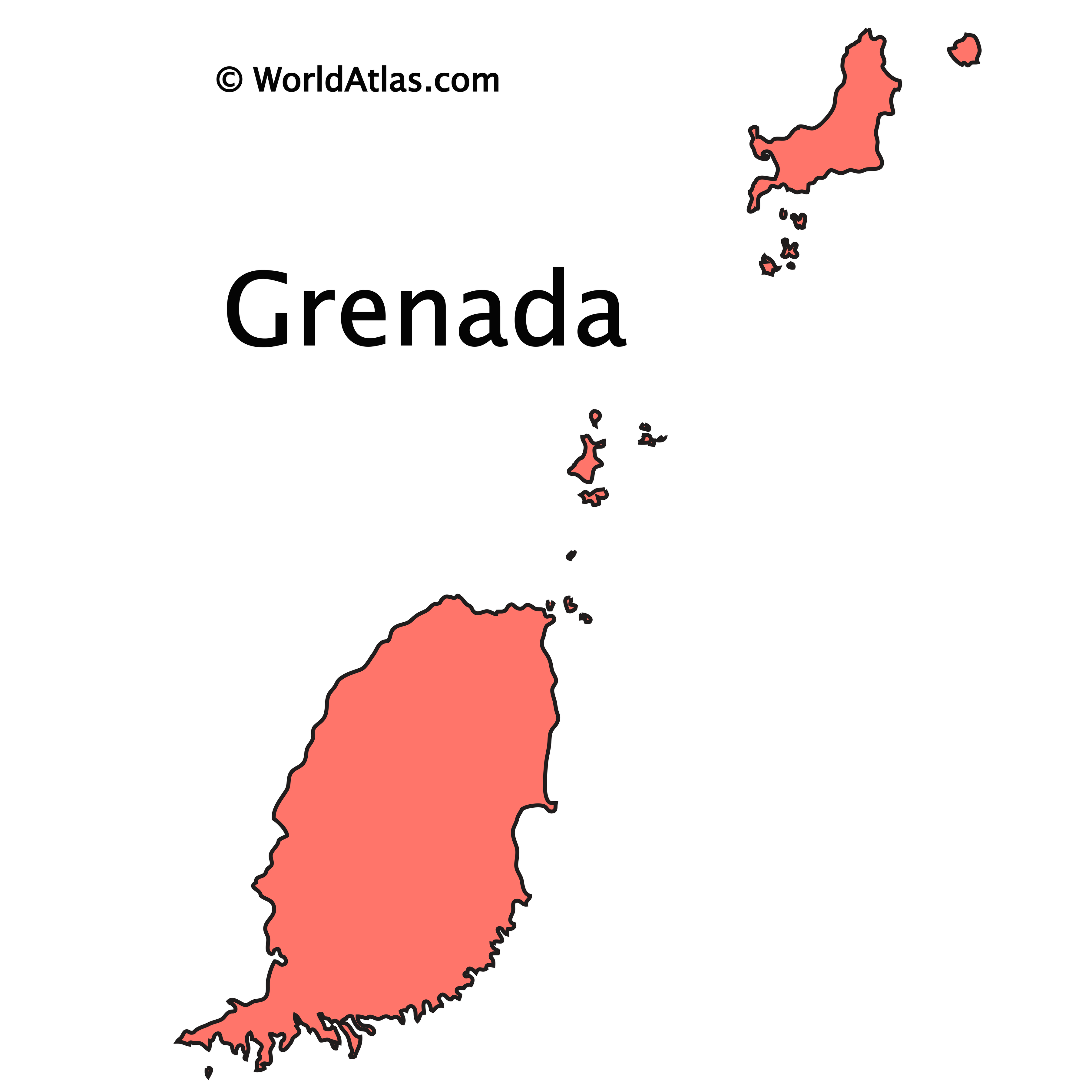 The above outline map represents Grenada, an island nation in the Caribbean Sea. The islands are of volcanic origin and are oval in shape, having a highly mountainous terrain.