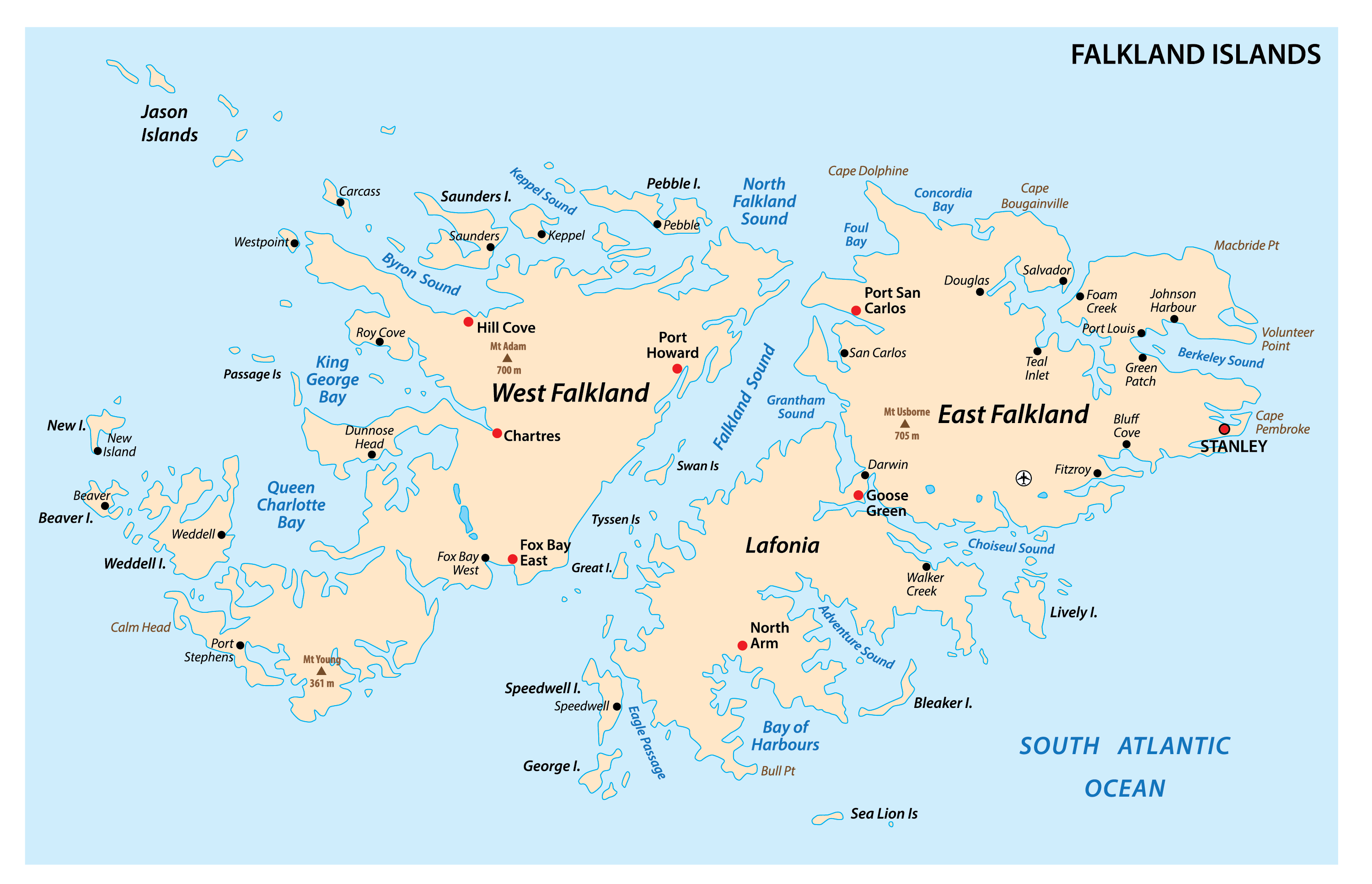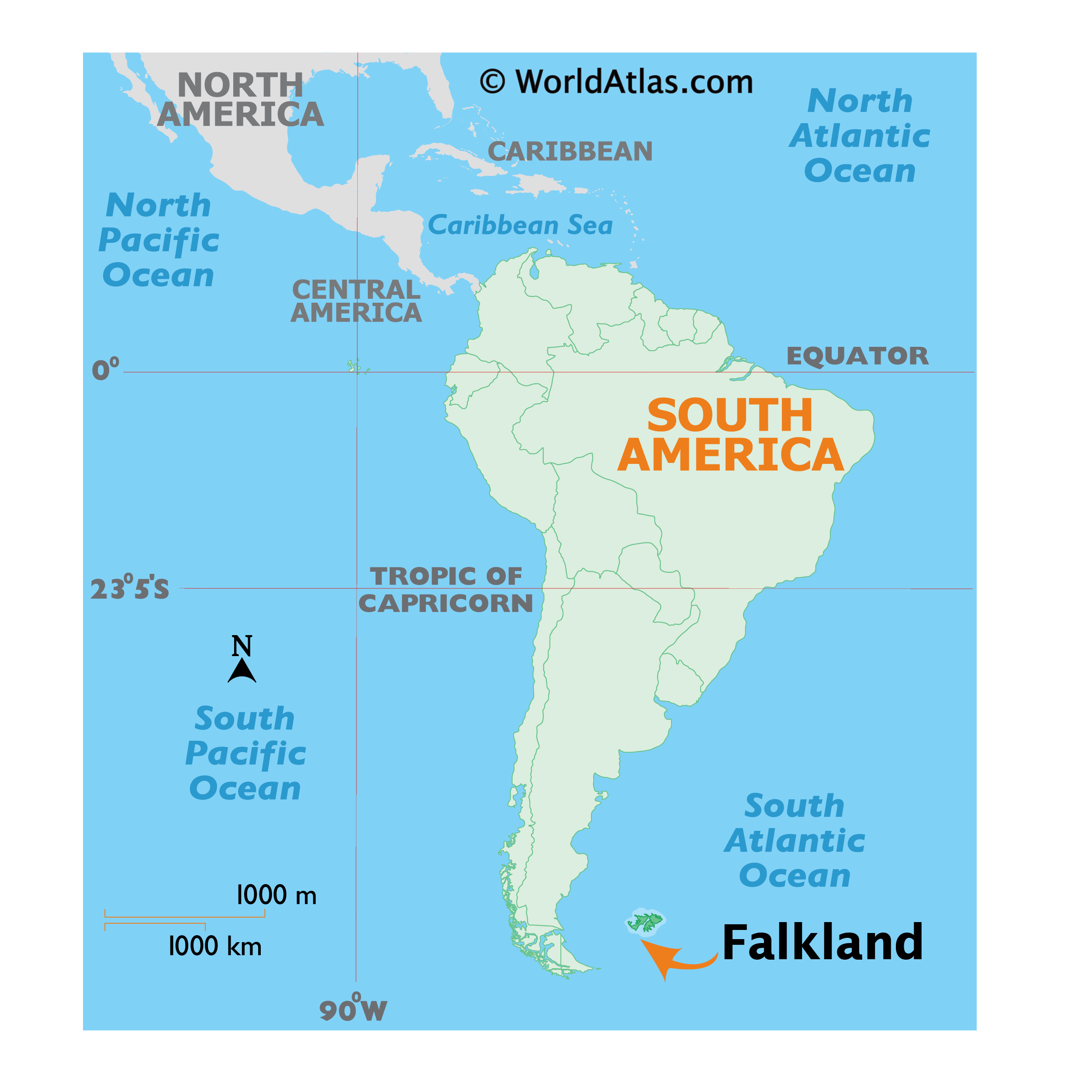 Falkland Islands are an archipelago and an overseas territory of the United Kingdom located to the southwest Atlantic Ocean at the southern-most point of South America. The islands are positioned both in the southern and western hemispheres of the Earth. Falkland Islands are situated about 300 miles (483km) to the east of the Argentina coastline.