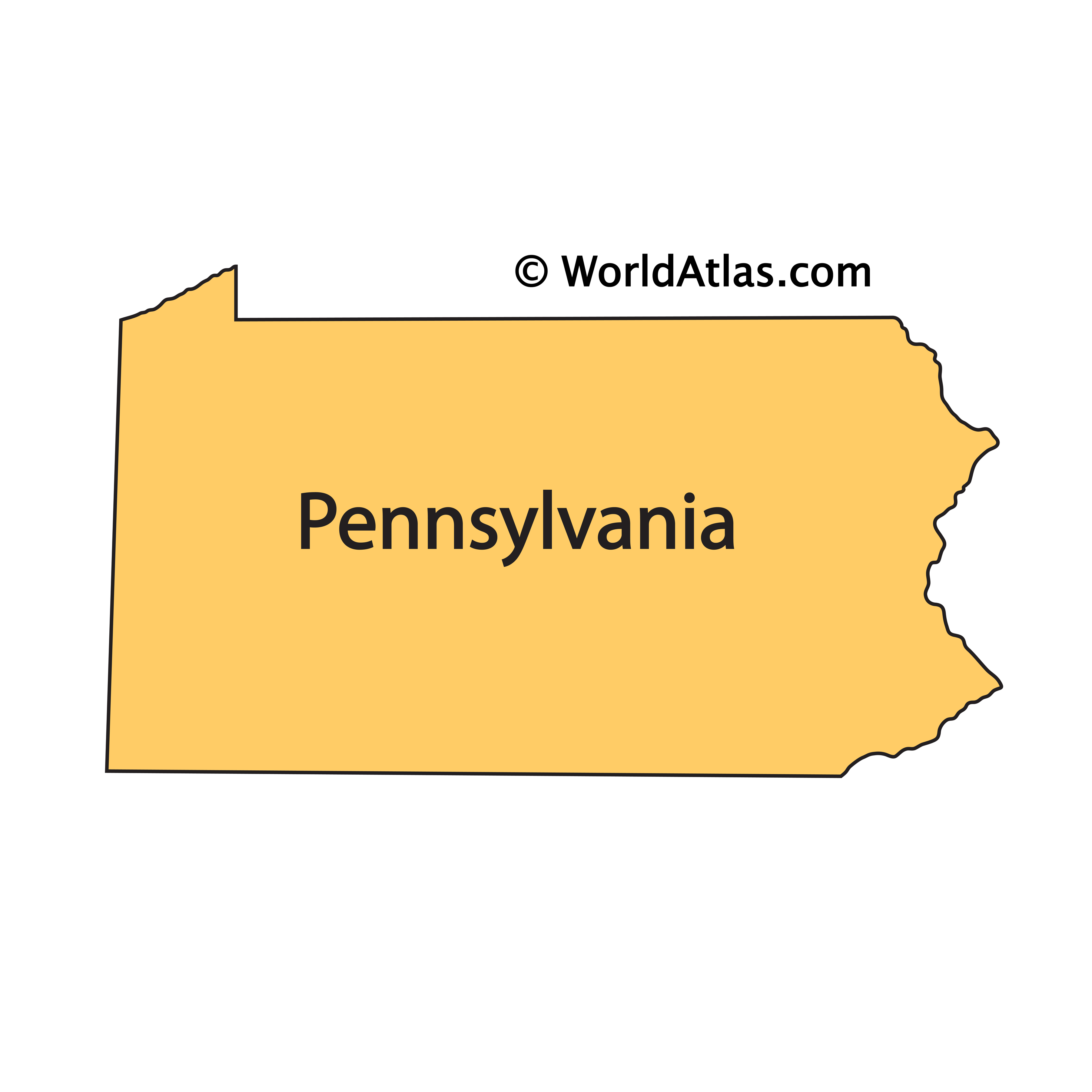 The above outline map represents the State of Pennsylvania, located in the Middle Atlantic region of the United States.