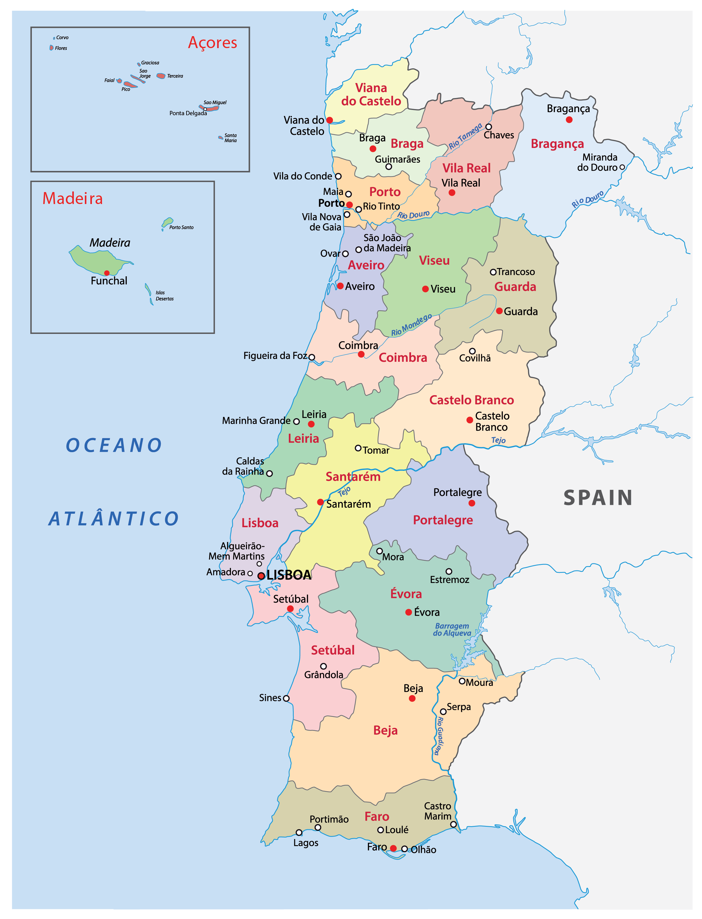 Districts of Portugal Map