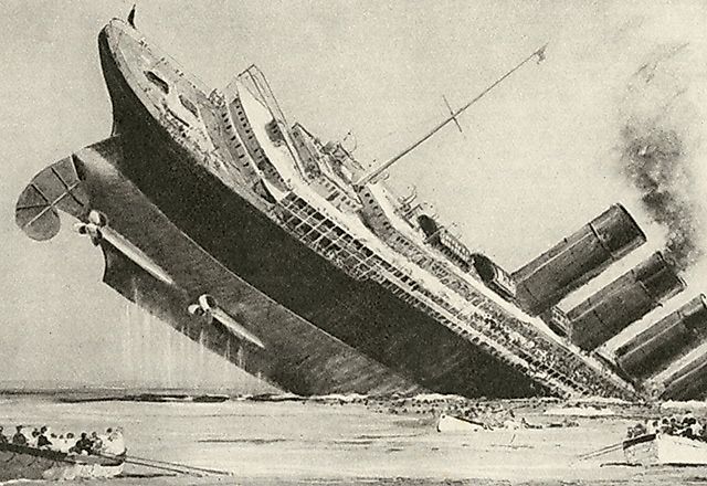 The ship listed so sharply to starboard that most of its lifeboats could not be lowered. Out of 48, only six reached the water before the vessel went down. Captain Walther Schwieger recorded the scene in his logbook: “Shot struck starboard side close behind the bridge. An extraordinarily heavy detonation followed, with a very large cloud of smoke. Great confusion is rife on board.”
